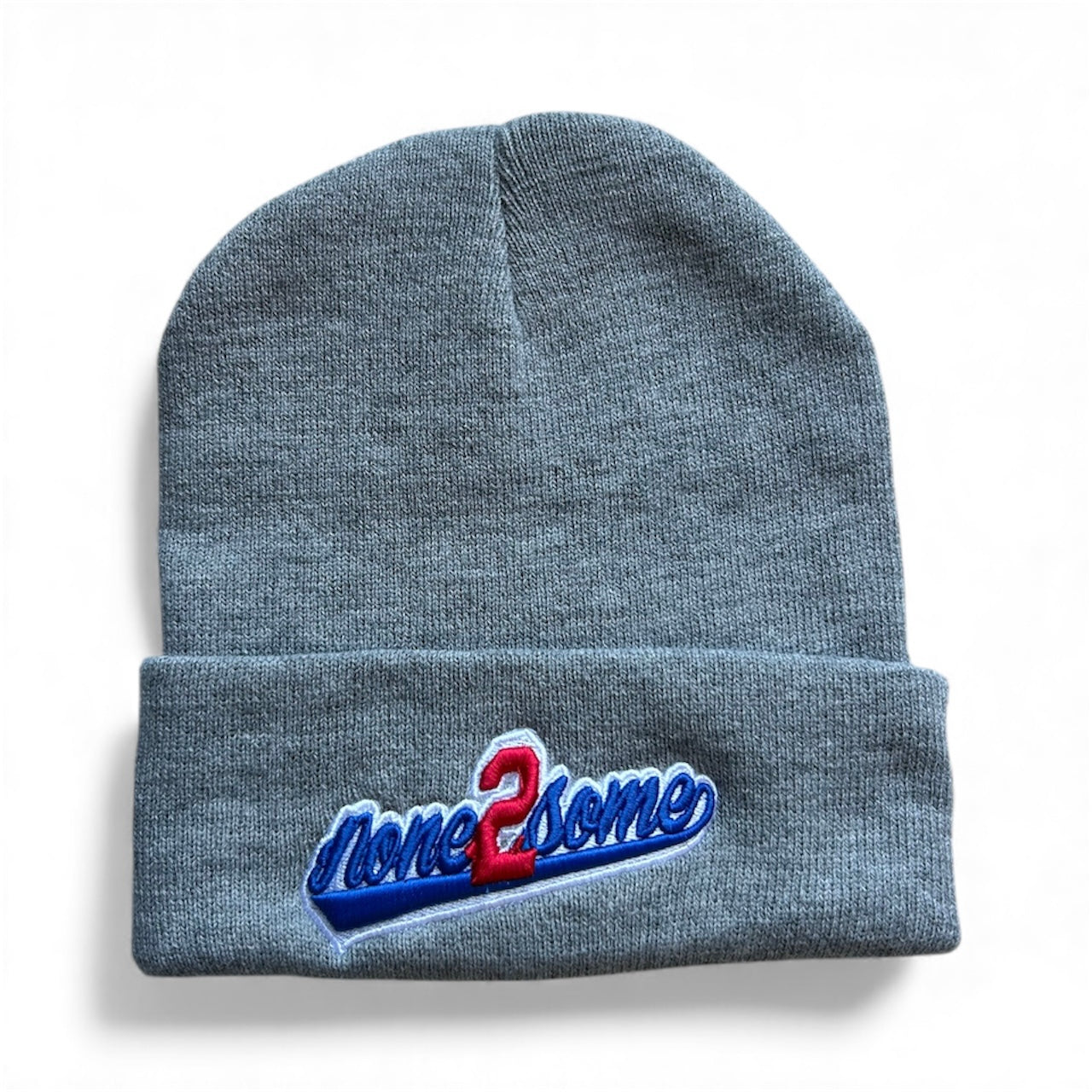 Classic Heather gray Cuffed Beanie with None 2 Some “Dodgers Script” embroidered on front and Embroidered 2 on the back