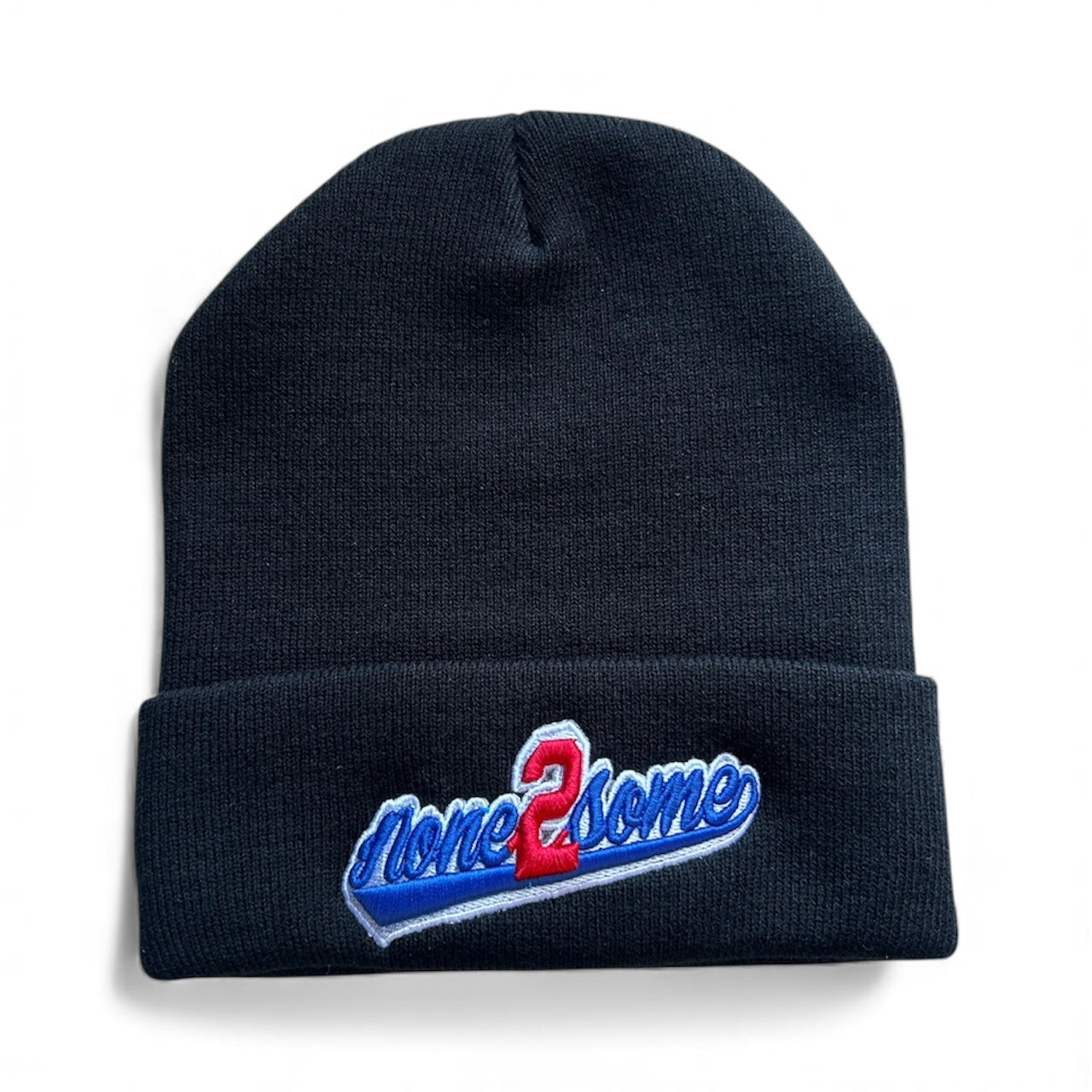 Classic Black Cuffed Beanie with None 2 Some “Dodgers Script” embroidered on front and Embroidered 2 on the back